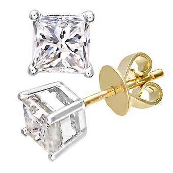 Jewelco London 18ct Yellow Gold Princess 1ct Diamond Solitaire Stud Earrings