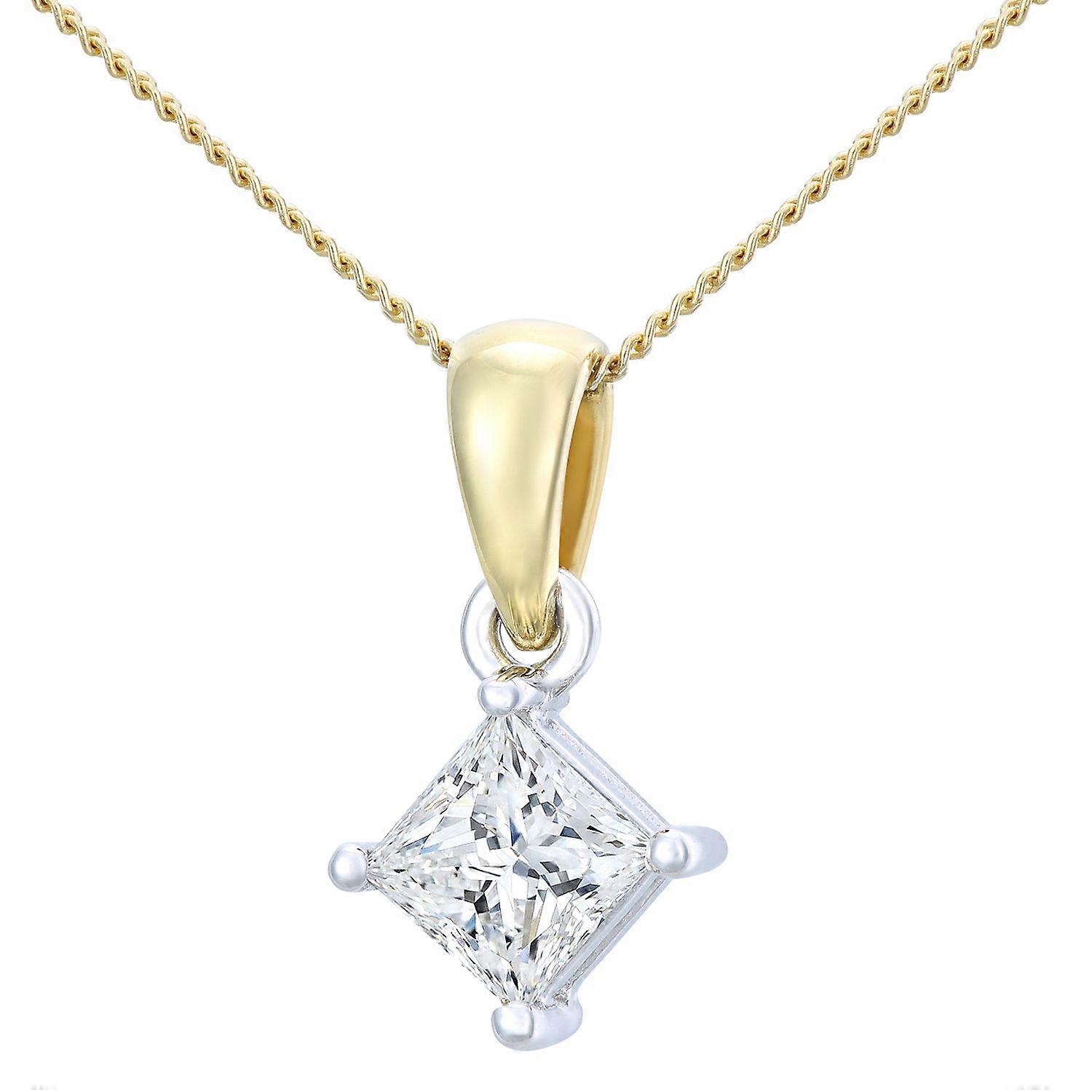 Jewelco London 18ct Yellow Gold Princess 3/4ct Diamond Solitaire Pendant Necklace 18 inch 46cm