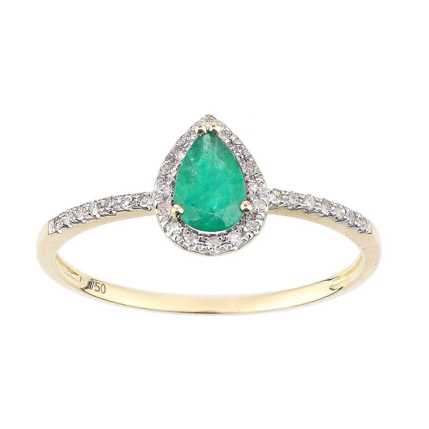 Jewelco London 18ct Yellow Gold Round 10pts Diamond Pear 0.4ct Emerald Pear Raindrop Halo Cluster Ring