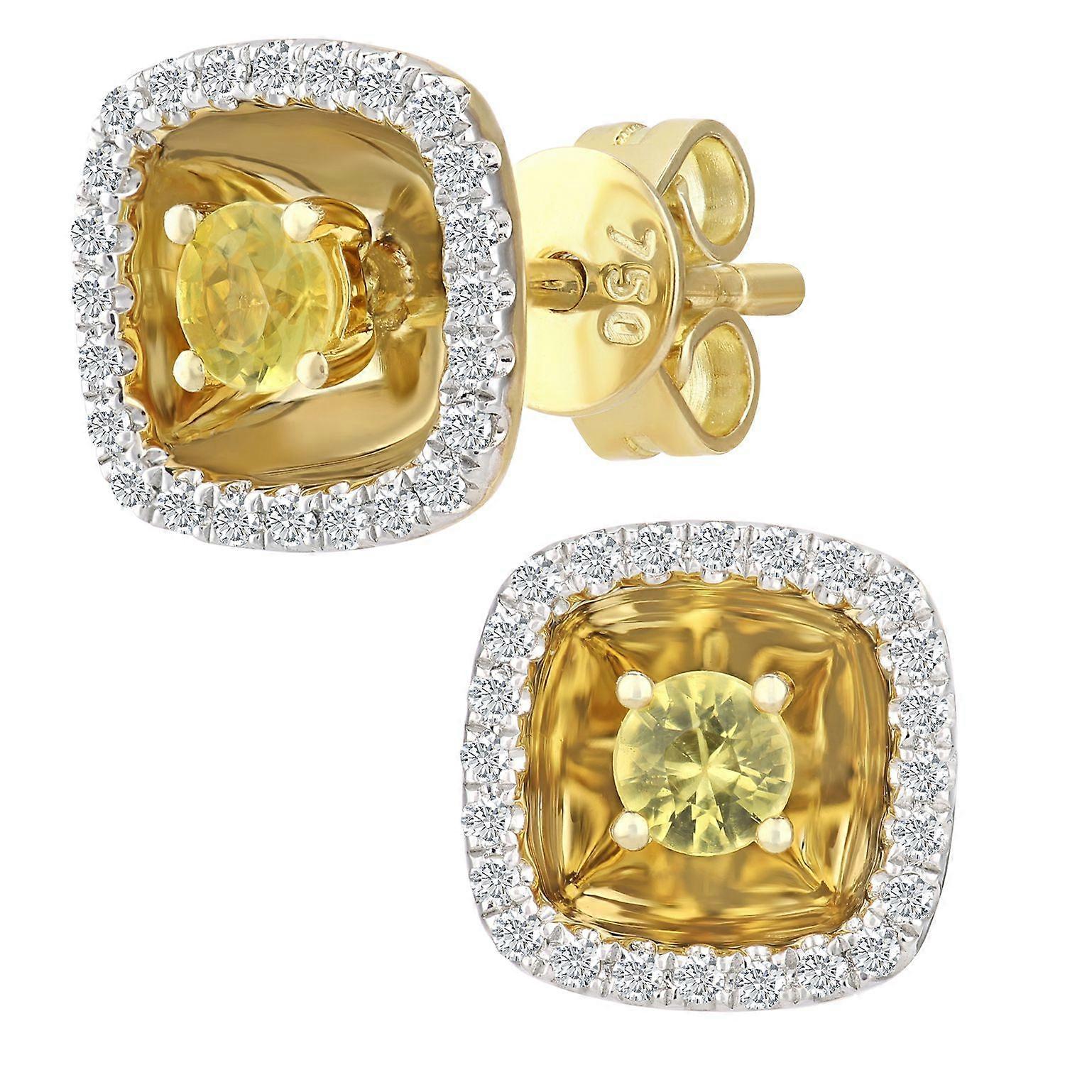 Jewelco London 18ct Yellow Gold Round 10pts Diamond Round 0.27ct Sapphire Halo Stud Earrings