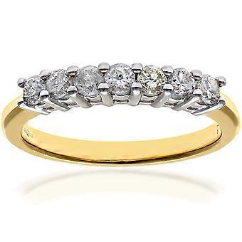 Jewelco London 18ct Yellow Gold Round 1/2ct Diamond 7 Stone Claw Set Half Eternity Ring 2mm