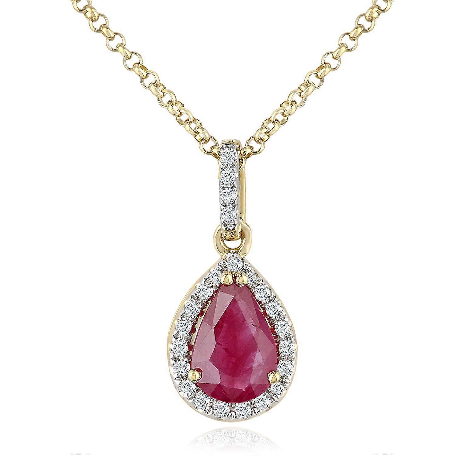 Jewelco London 18ct Yellow Gold Round 7pts Diamond Pear 0.7ct Ruby Cluster Pendant Necklace 16 inch 42cm