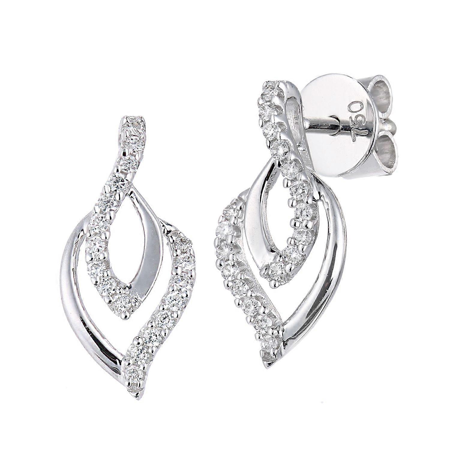 Jewelco London 18ct White Gold Round 12pts Diamond Wishbone Rain Drop Stud Earrings