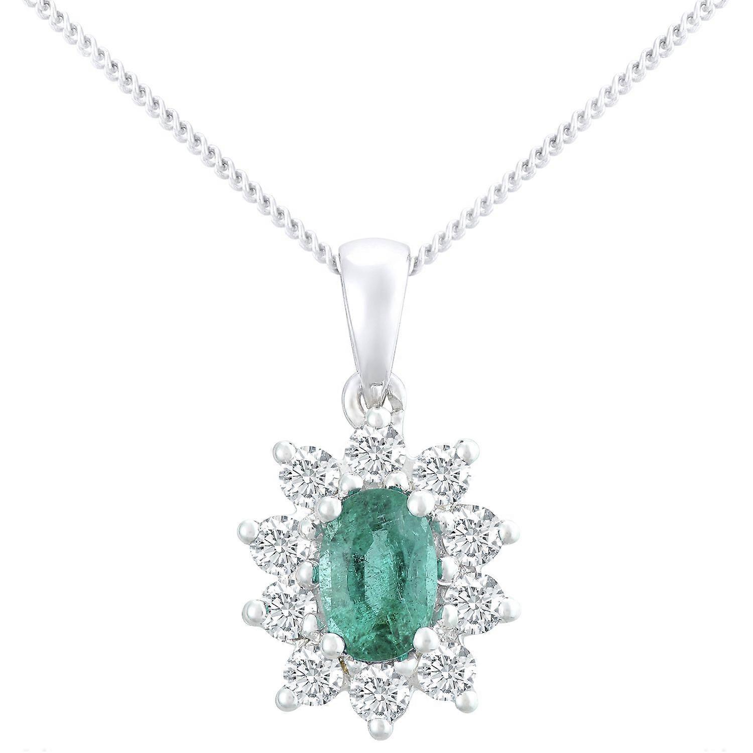 Jewelco London 18ct White Gold Round 1/3ct Diamond Cluster Pendant Necklace 18 inch 46cm