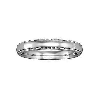 Jewelco London 18K 白金 - 3 毫米 Essential 宫廷形状磨粒边缘戒指承诺 / 结婚戒指