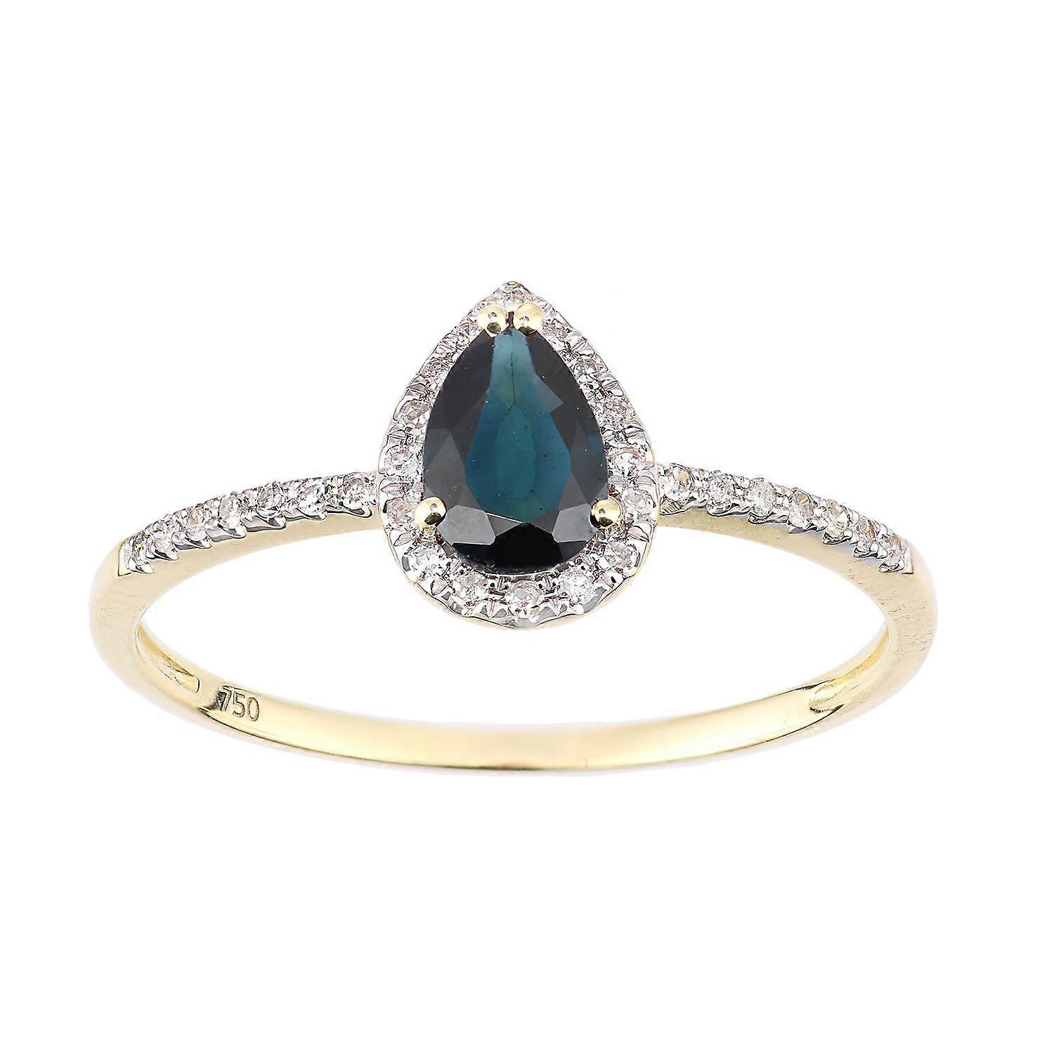 Jewelco London 18ct Yellow Gold Round 10pts Diamond Pear 1/2ct Sapphire Pear Raindrop Halo Cluster Ring