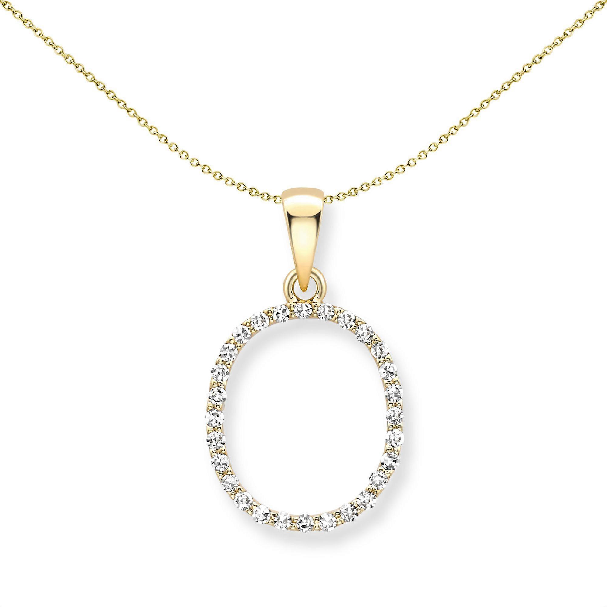Jewelco London 18ct Yellow Gold Diamond Initial Charm Pendant Letter O 10mm x 16mm