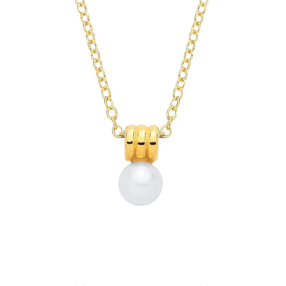 Jewelco London 18K Gold Plated CZ & Fresh Water Pearl 4.5-5mm Fancy Necklace - 16"