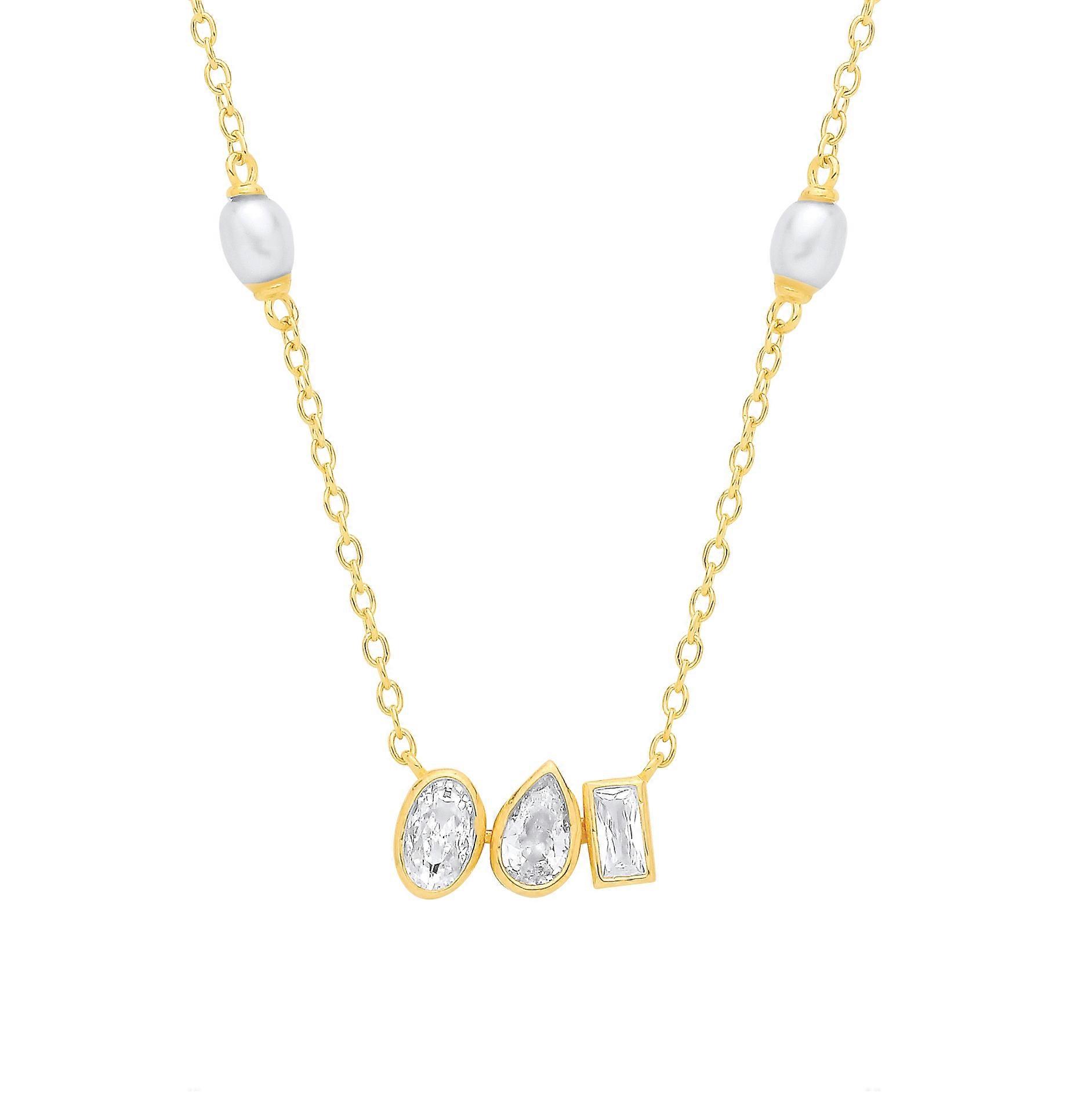 Jewelco London presents this piece from it's latest collection of jewellery, a 18K Gold Plated CZ & White Rice Shape Fresh Water Pearl Necklace GEMSTONE: Pearl GEMSTONE 2: Cubic Zirconia, Pear, White, Simulated SKU: GVK558