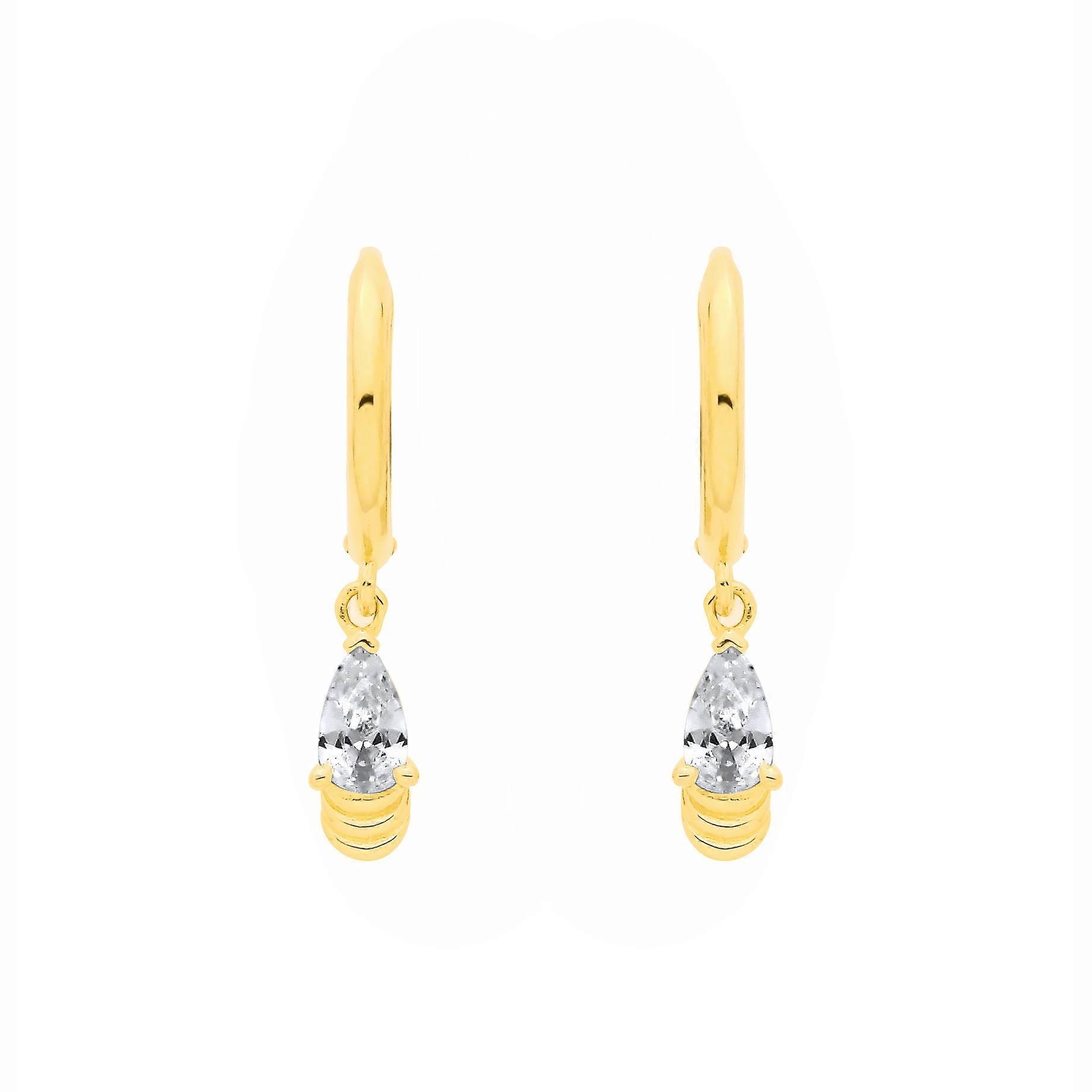 Jewelco London 18K Gold-plated Sterling Silver CZ Drop Huggie Hoop Earrings