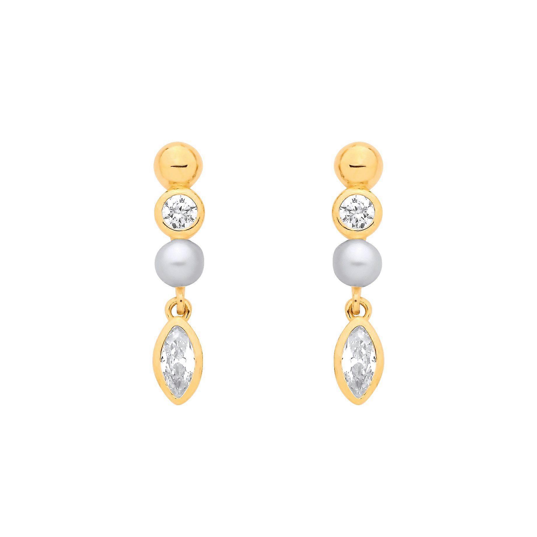 Jewelco London 18K Gold Plated Sterling Silver CZ & Fresh Water Pearl 3-3.5mm Drop Earrings