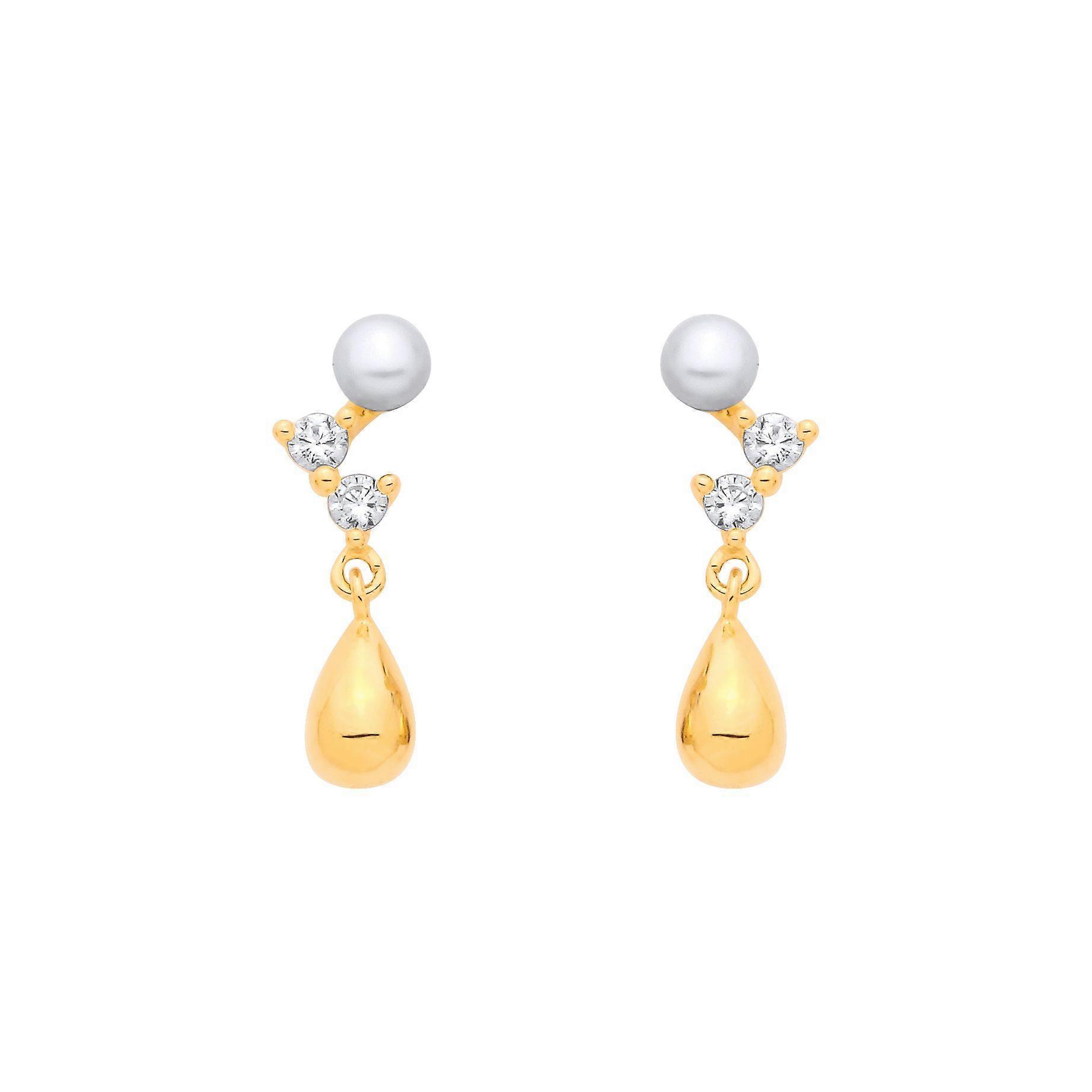 Jewelco London 18K Gold Plated Sterling Silver CZ & Fresh Water Pearl 3-3.5mm Drop Earrings