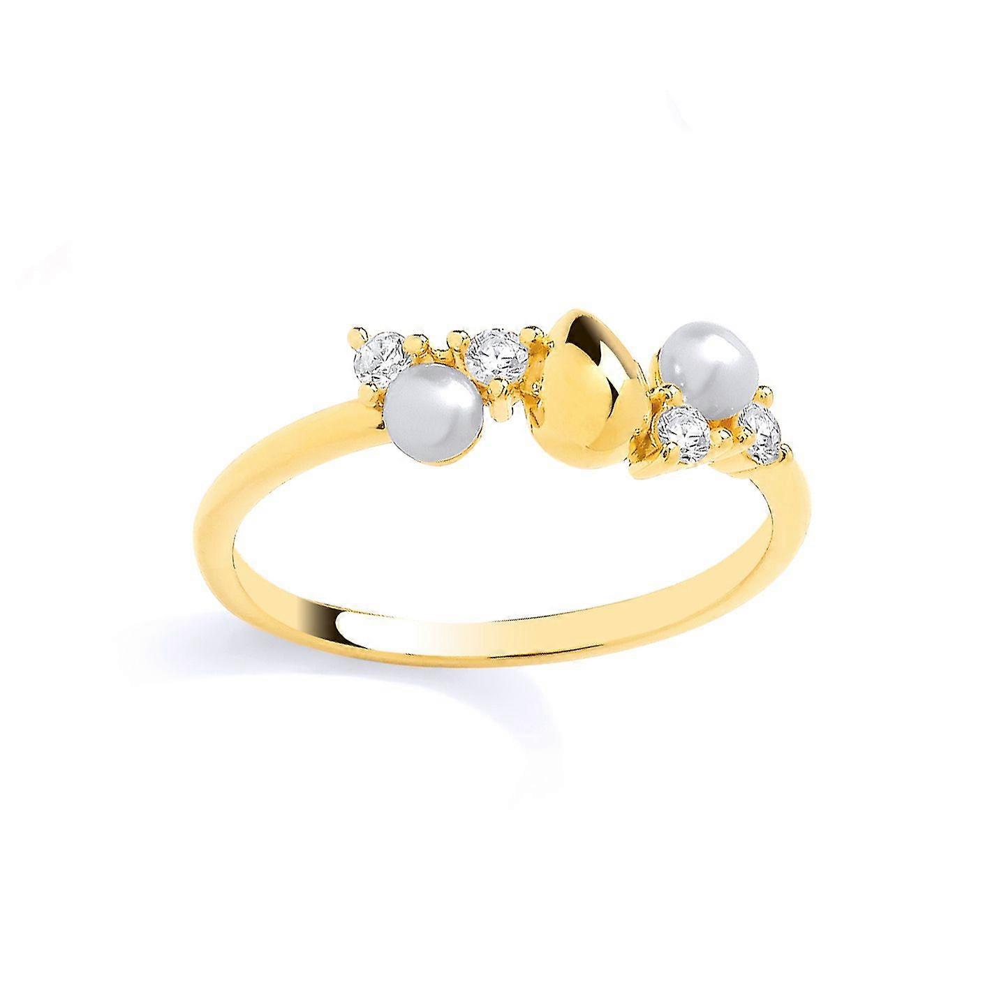 Jewelco London 18K Gold Plated Sterling Silver CZ & Fresh Water Pearl 3-3.5mm Ring