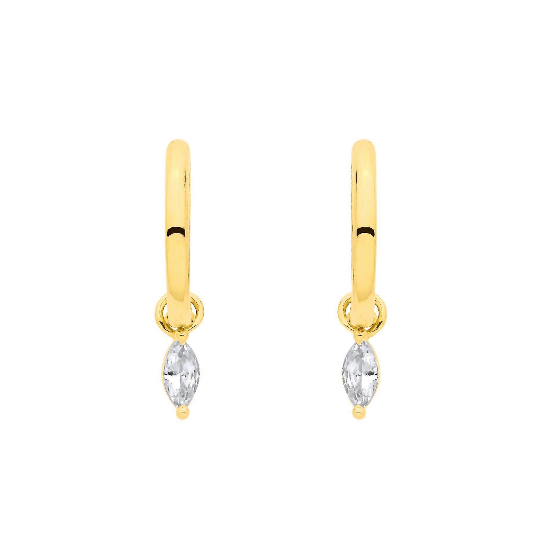 Jewelco London presents this piece from it's latest collection of Sterling Silver jewellery, a pair of 18K Gold Plated Sterling Silver Dangling CZ Hoop Earrings GEMSTONE: Cubic Zirconia, Marquise, White, Simulated SKU: EAG1367