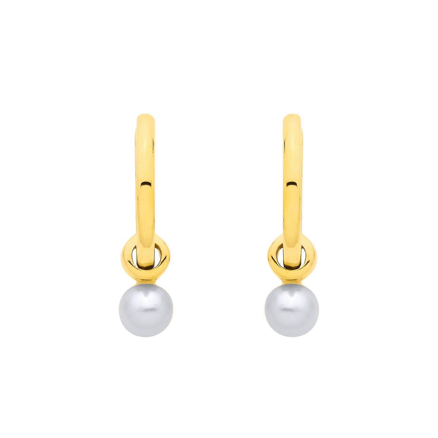 Jewelco London 18K Gold Plated Sterling Silver Fresh Water Pearl Huggie Hoop Earrings