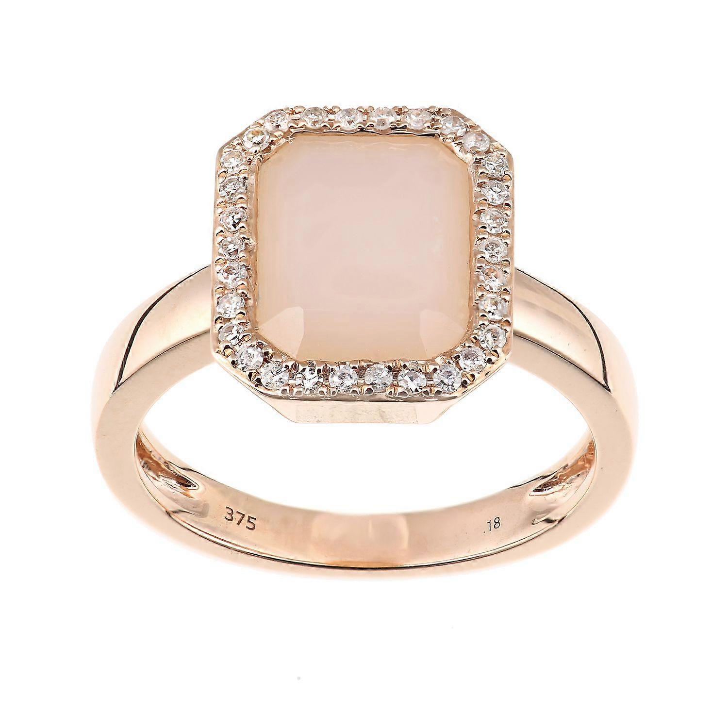 Jewelco London 9ct Rose Gold Round 20pts Diamond Octagon 2.3ct Opal Octagon Halo Rubover Cocktail Ring