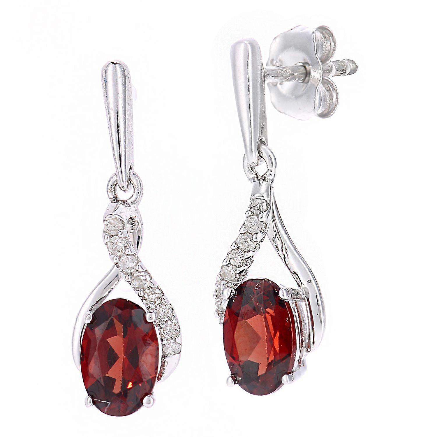 Jewelco London 9ct White Gold Round 5pts Diamond Oval 1.05ct Garnet Kiss Crossover Drop Earrings