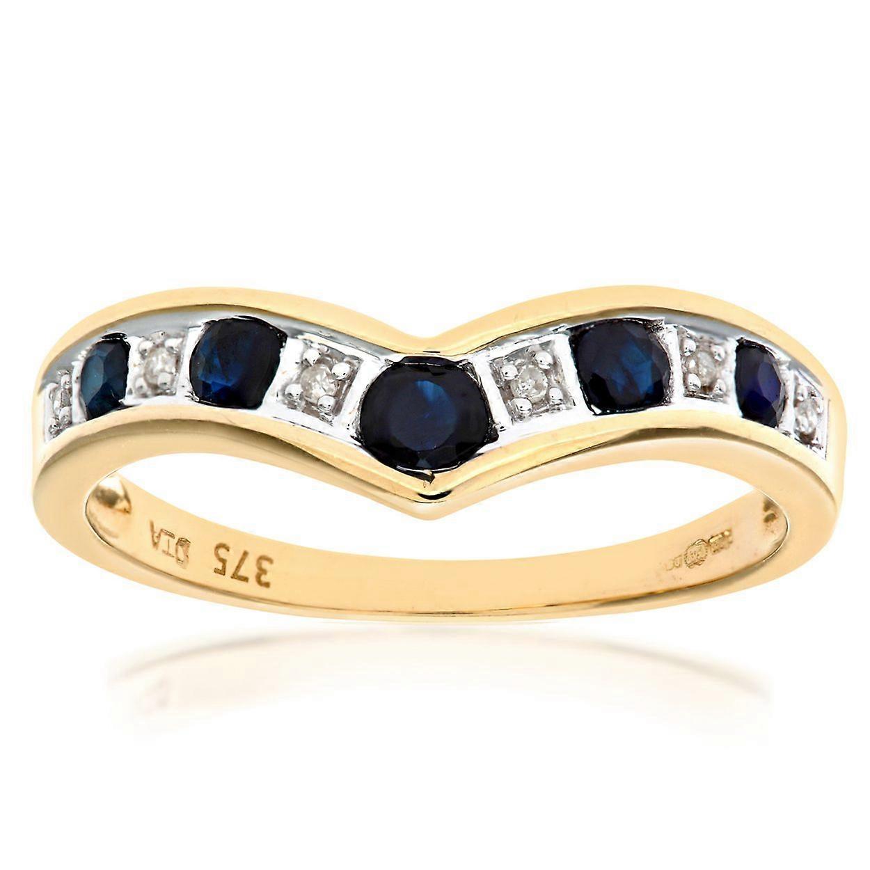 Jewelco London 9ct Yellow Gold Round 2pts Diamond Round 0.46ct Sapphire Alternating Channel Wishbone Ring 2mm
