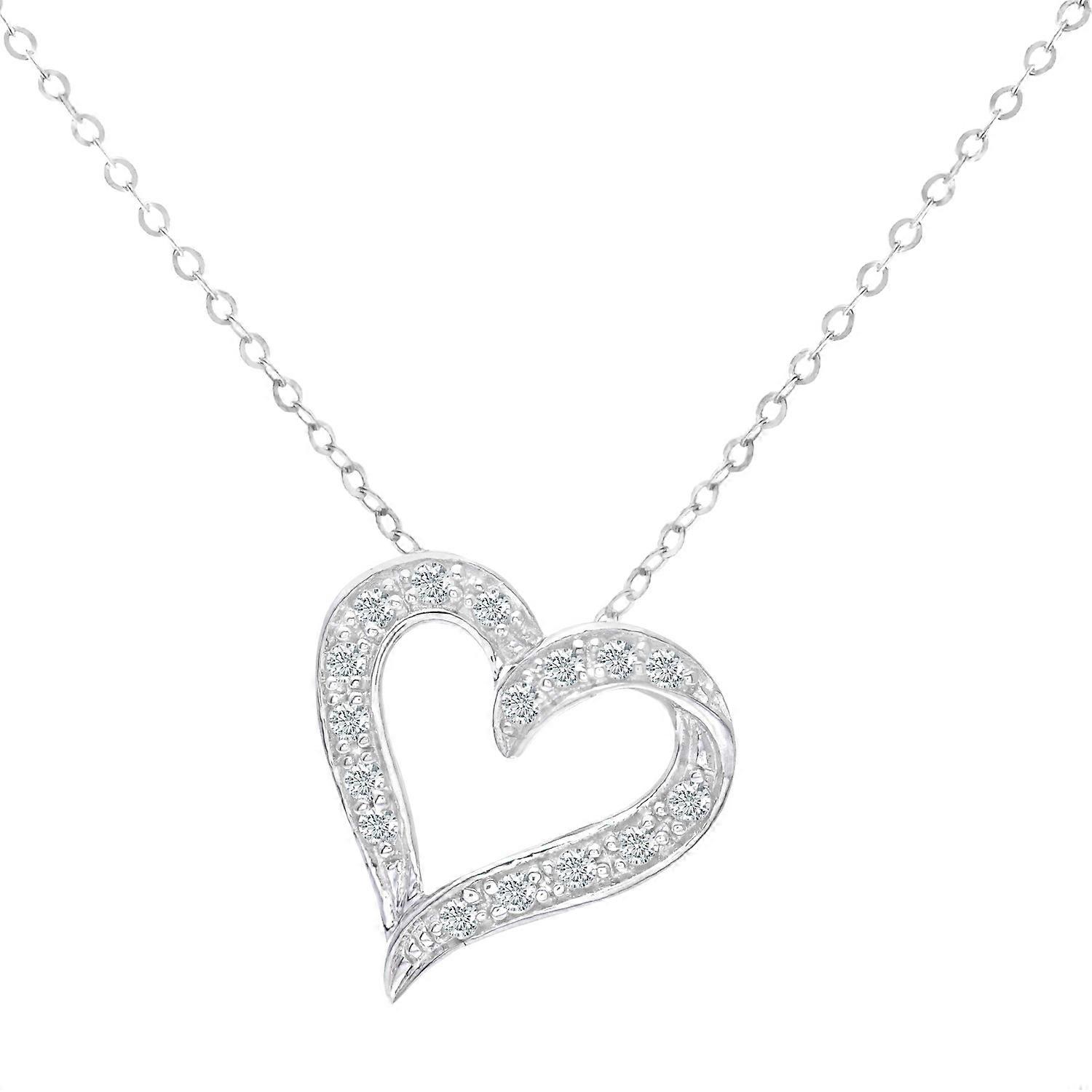 Jewelco London 9ct White Gold Round 10pts Diamond Heart Pendant Necklace 18 inch 46cm