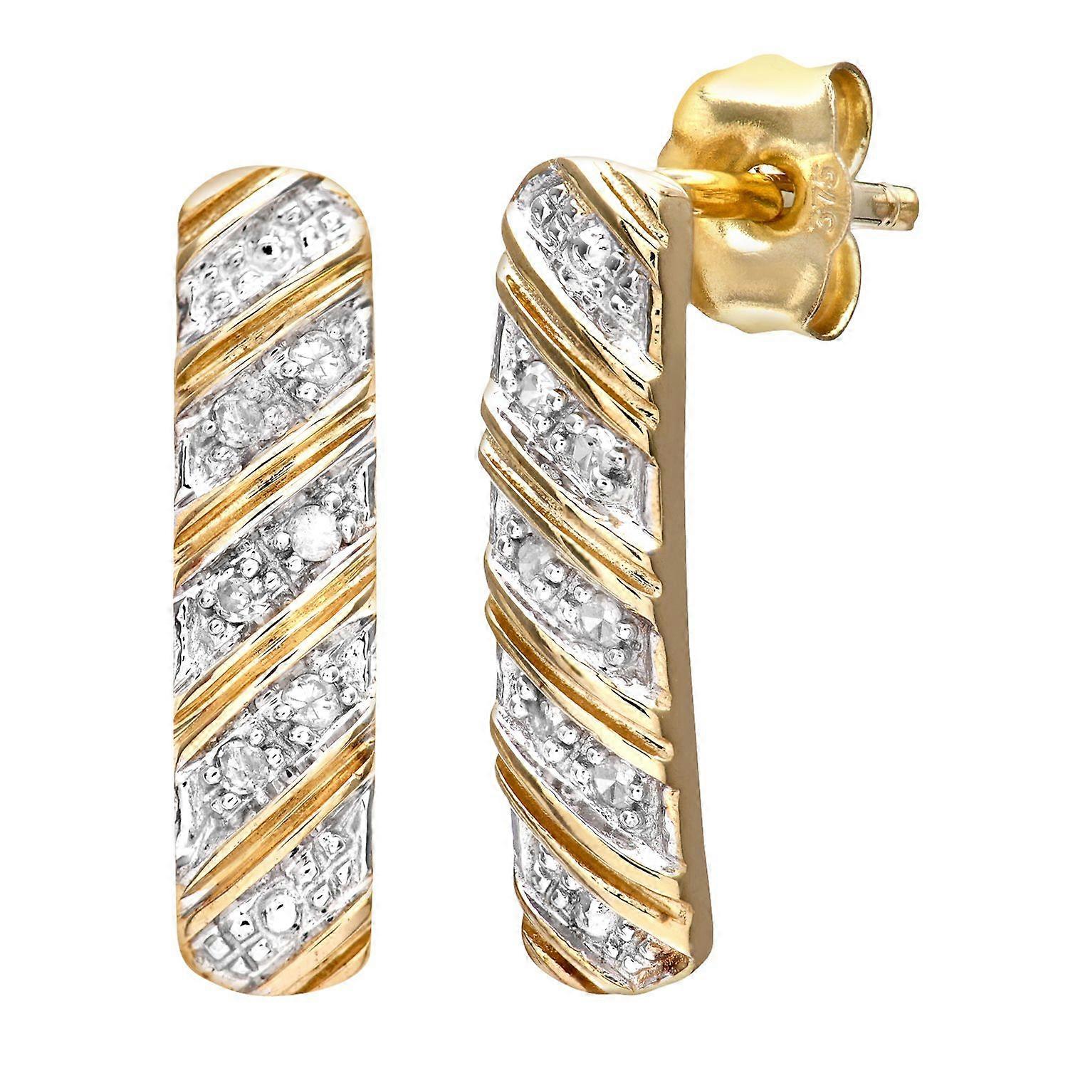 Jewelco London 9ct Yellow Gold Round 5pts Diamond Stick Drop Earrings