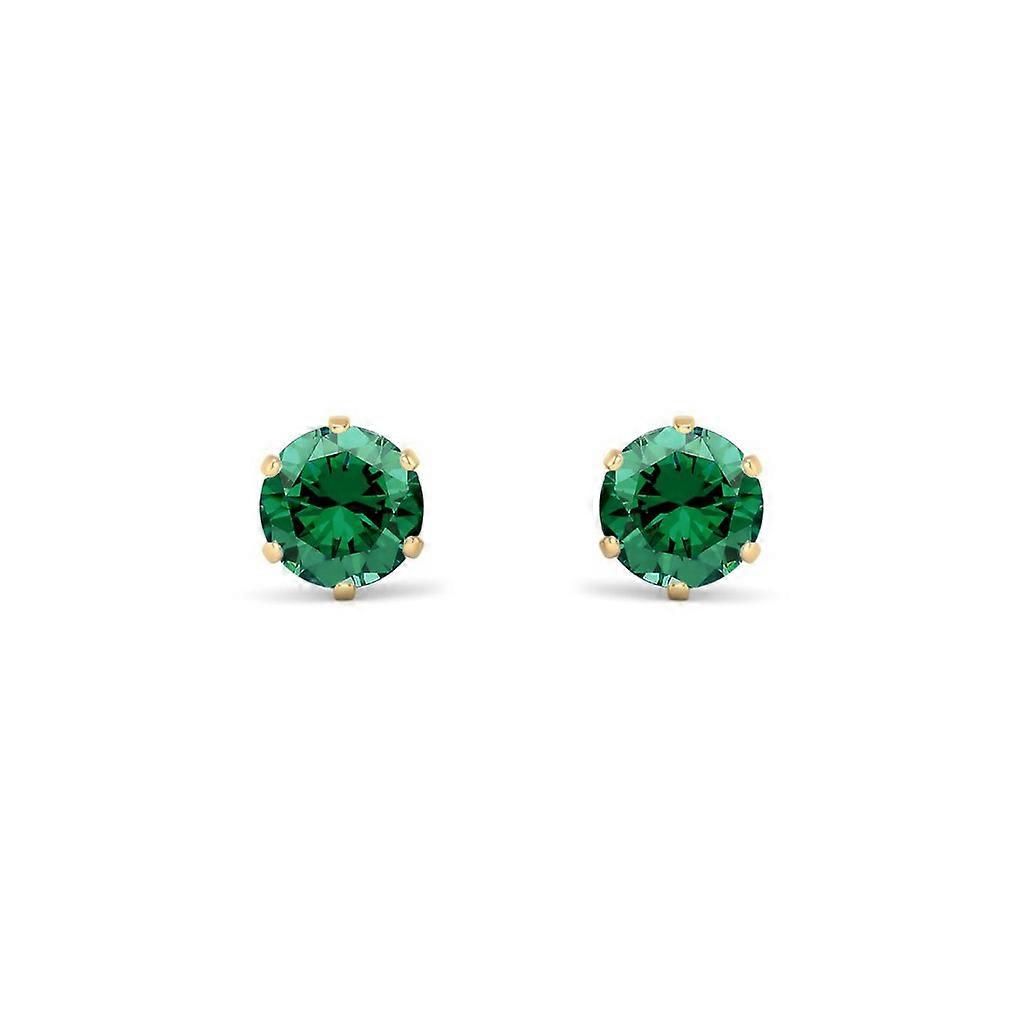 Jewelco London 9ct Gold Emerald-Green Round Brilliant Cubic Zirconia Solitaire Claw Set Stud Earrings, 5mm 1 Carat
