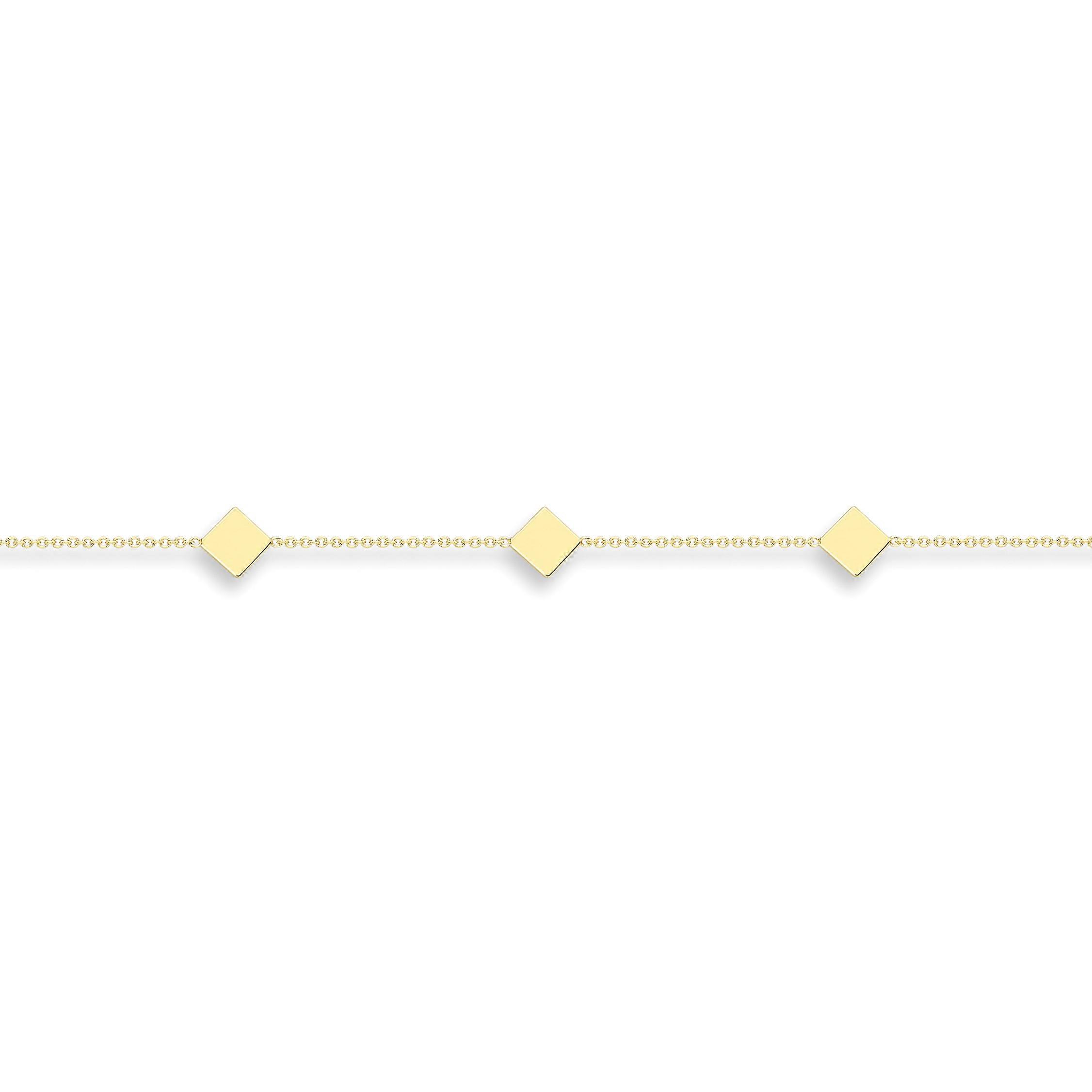 A classically simple design, this eminently wearable 9ct yellow gold bracelet features trace chain and six square elements, 5x5mm. Overall Dimensions: 190mm x 5mm x 5mm Height: 5mm Width: 5mm SKU: CANR02114-07