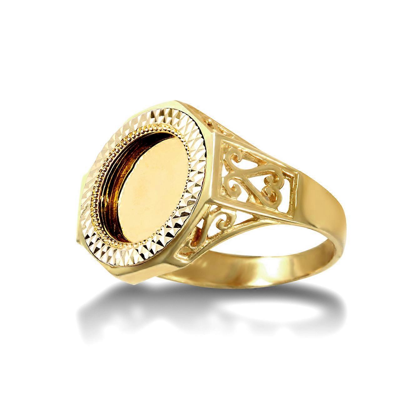 Jewelco London 9ct Gold Octagon Scroll Quarter Sovereign Coin Mount Ring - Gold-plated Silver Cup