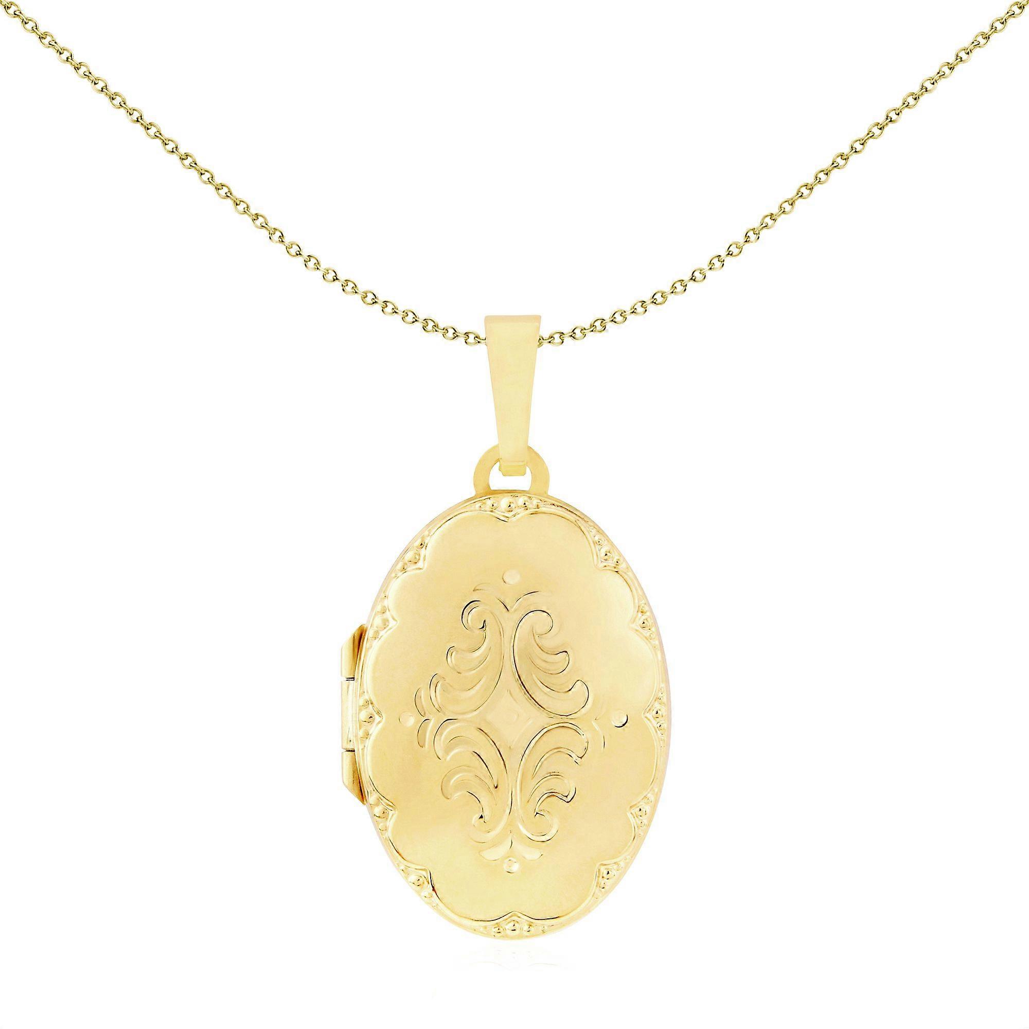 Jewelco London 9ct Gold Oval Engraved Floral Locket 16x24mm