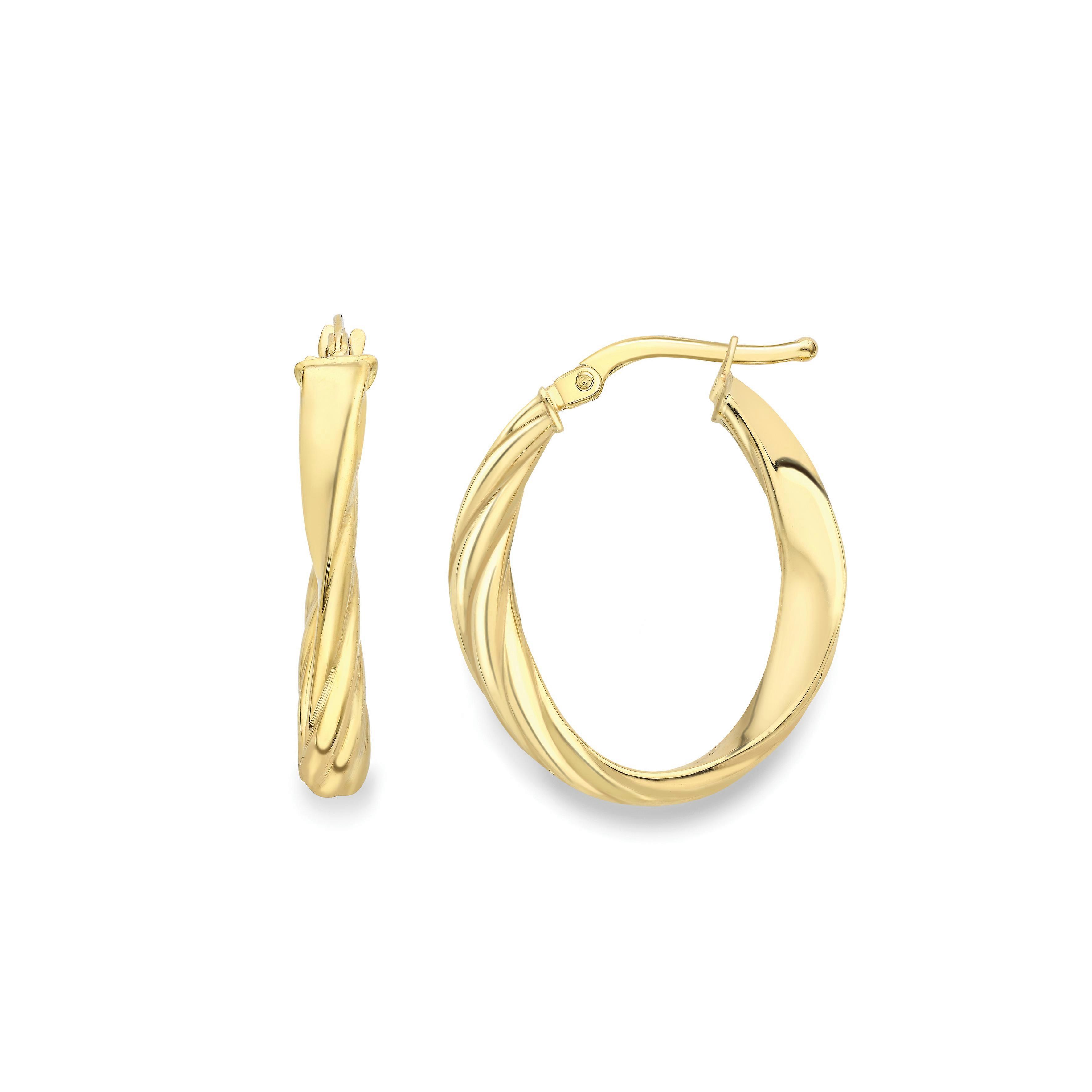 Jewelco London 9ct Gold Polished and Twisted Oval Hoop Earrings