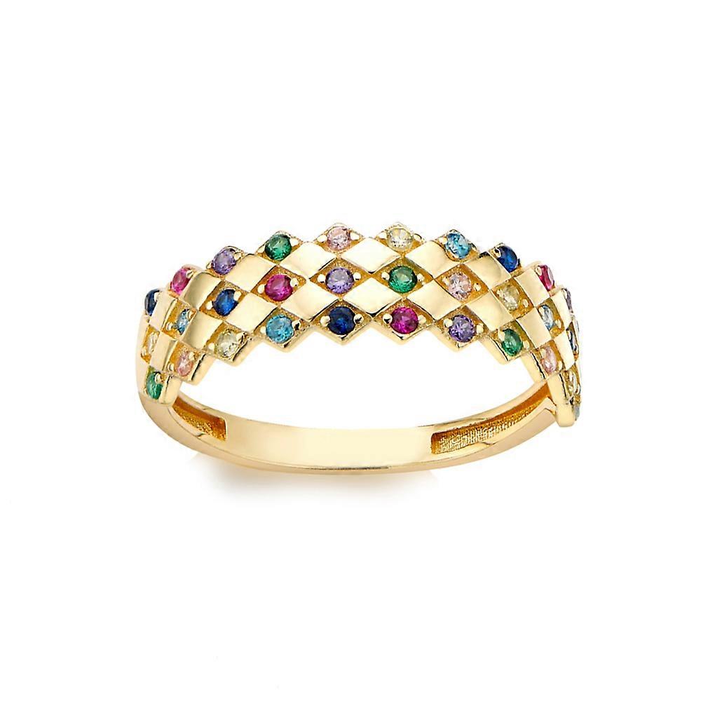 Jewelco London 9ct Gold Rainbow Pastel CZ Rhombus Clown Crown Ring 5mm