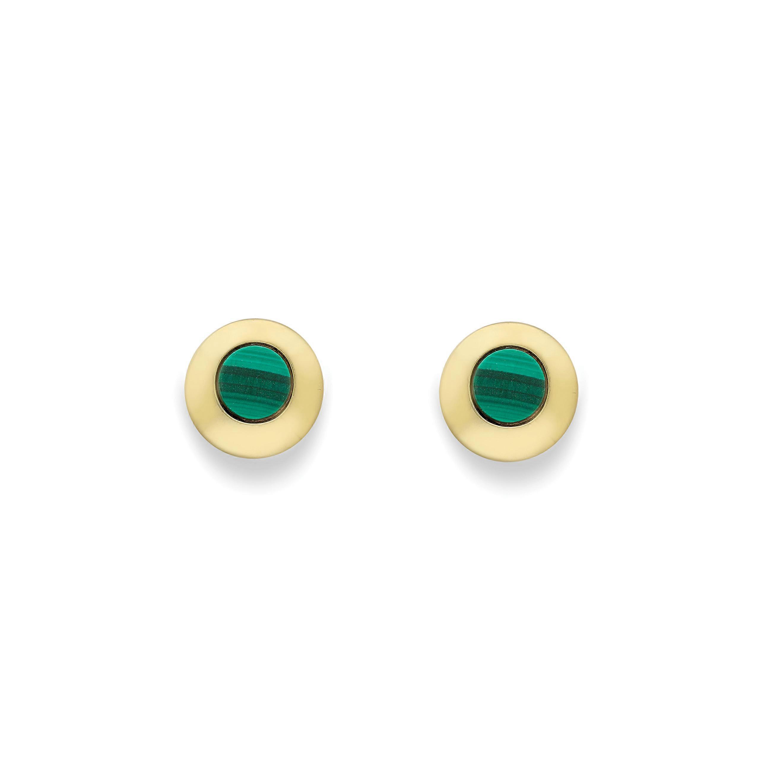Jewelco London 9ct Gold Round Malachite Stud Earrings