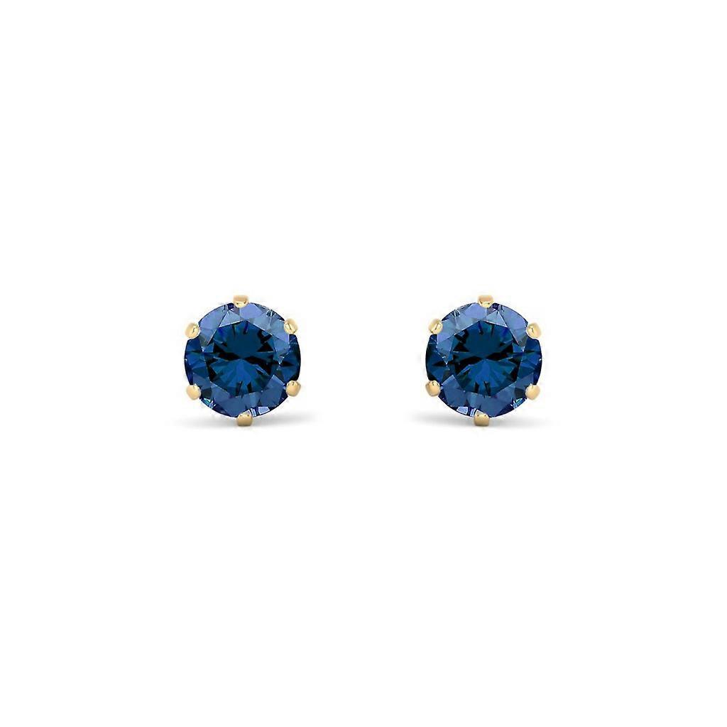 Jewelco London 9ct Gold Teal Blue Round Brilliant Cubic Zirconia Solitaire Claw Set Stud Earrings, 5mm 1 Carat