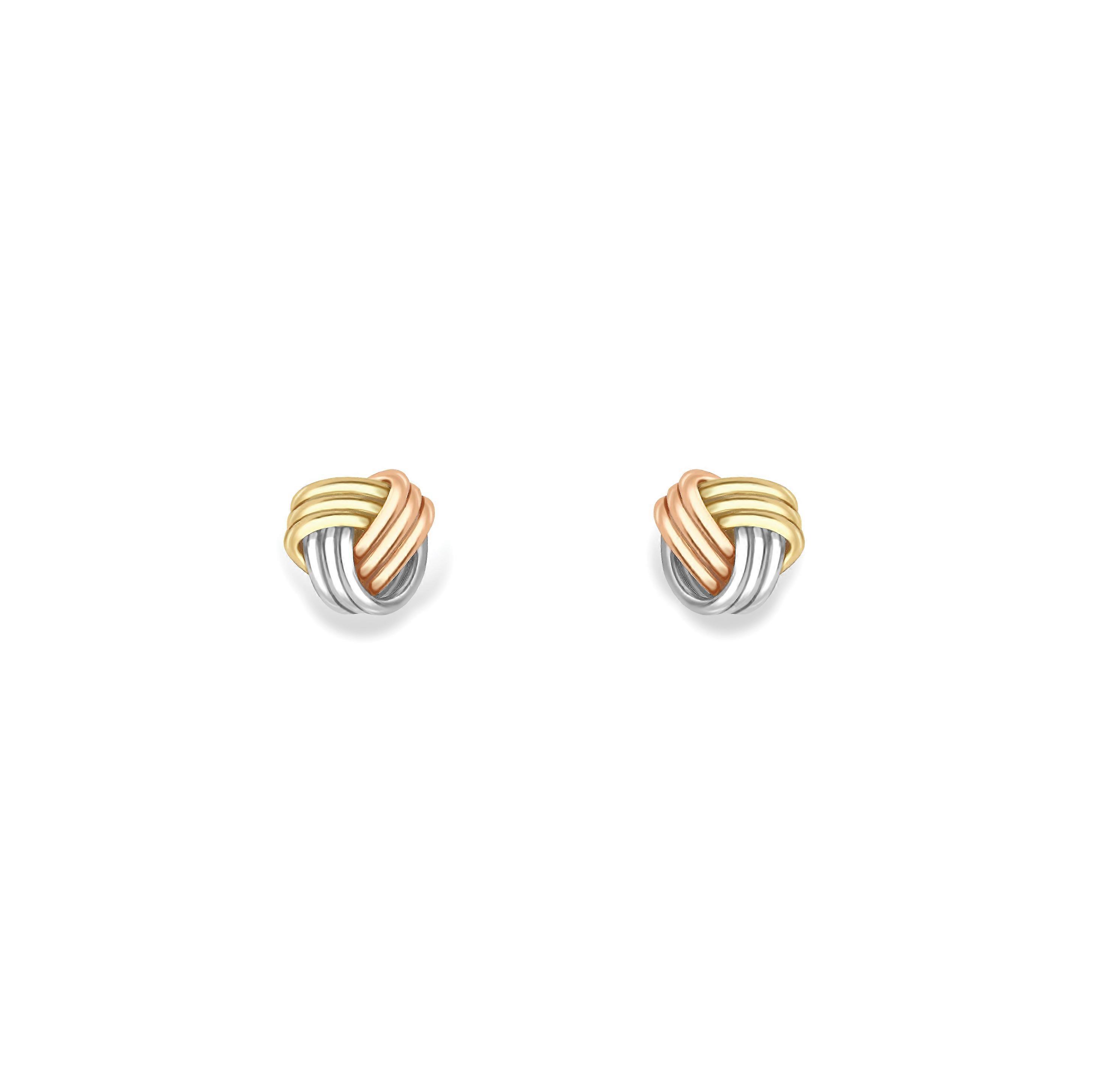 Jewelco London 9ct Gold Three Colour Knot Earrings