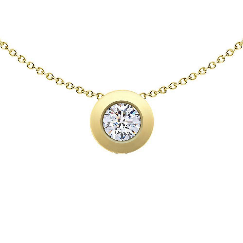 Jewelco London 9ct Yellow Gold Cubic Zirconia Donut Bezel Solitaire Slider Pendant Necklace 4mm