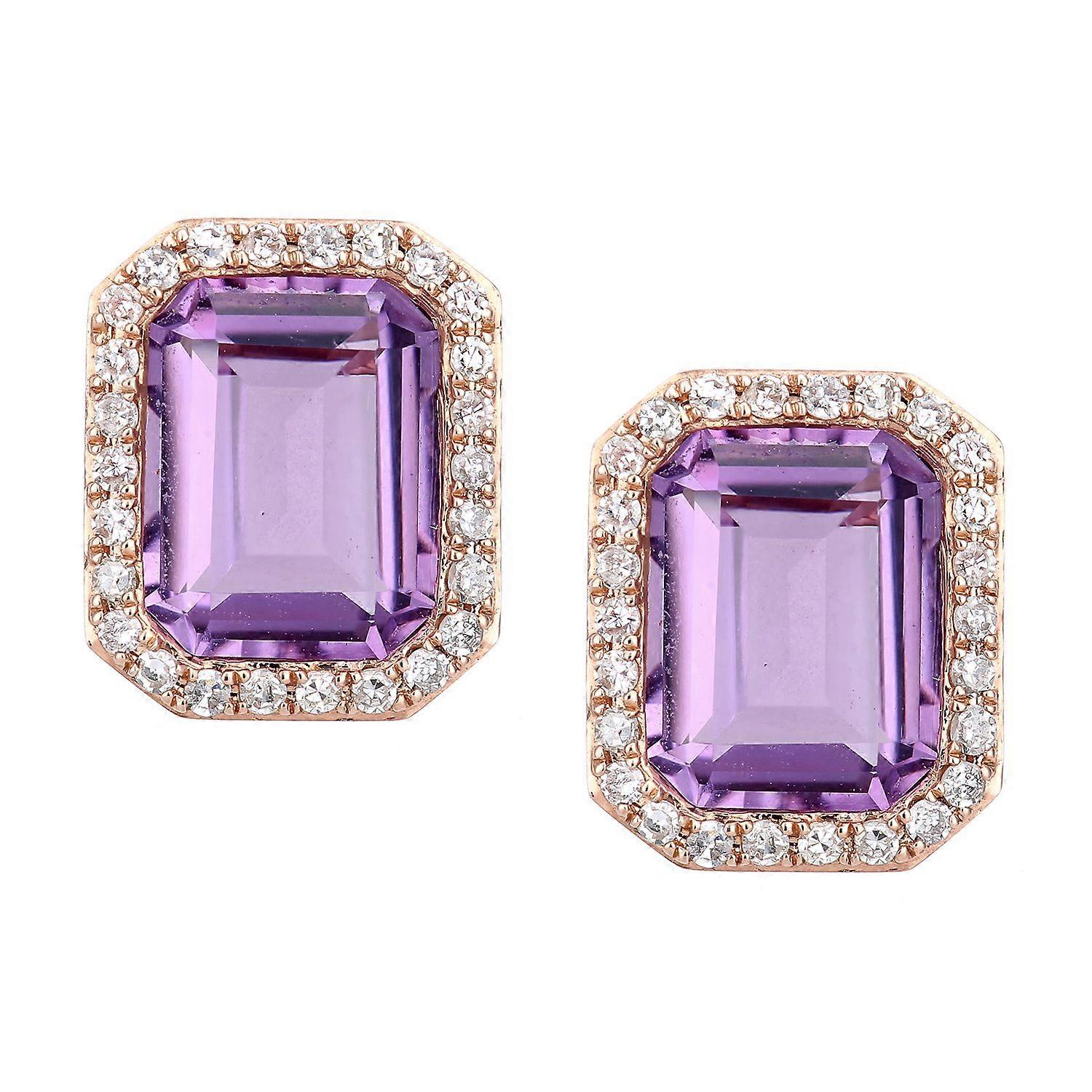 Jewelco London 9ct Rose Gold Round 0.3ct Diamond Octagon 4ct Amethyst Cocktail Drop Earrings