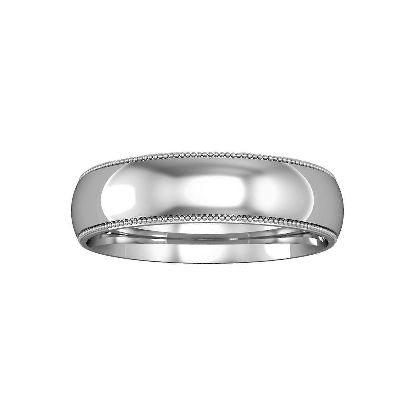 Jewelco London 9ct White Gold - 5mm Essential Court-Shaped Mill Grain Edge Band Commitment / Wedding Ring