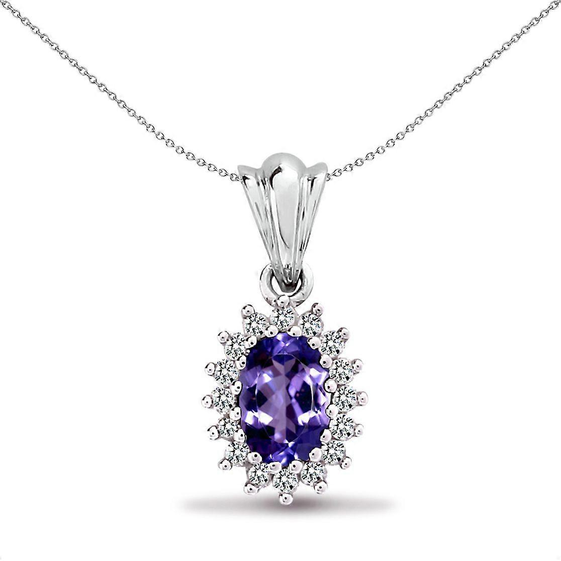 Jewelco London 9ct White Gold Cluster Set H I2 0.12ct Diamond and Oval Lilac 0.55ct Tanzanite Royal Cluster Pendant