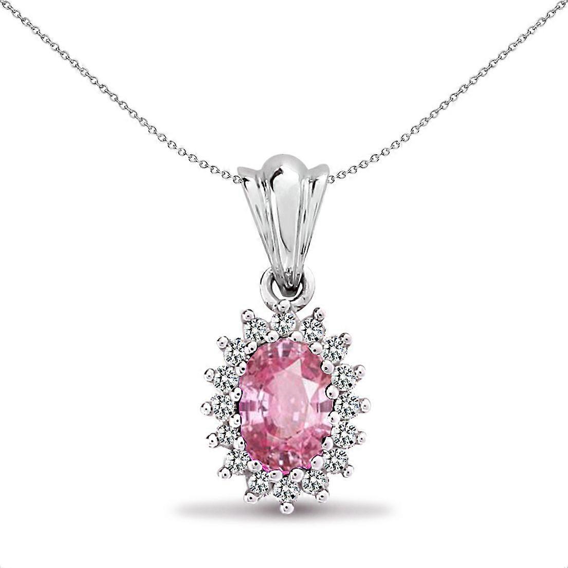 Jewelco London 9ct White Gold Cluster Set Round H I2 0.12ct Diamond and Oval Pink 0.68ct Sapphire Royal Cluster Pendant