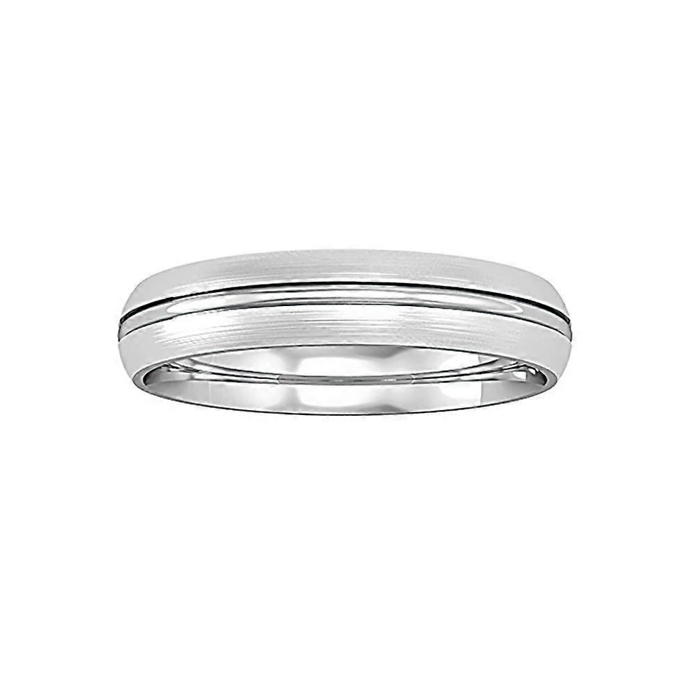 Jewelco London 9ct White Gold Court Groove Satin Brushed Band Wedding Ring 4mm
