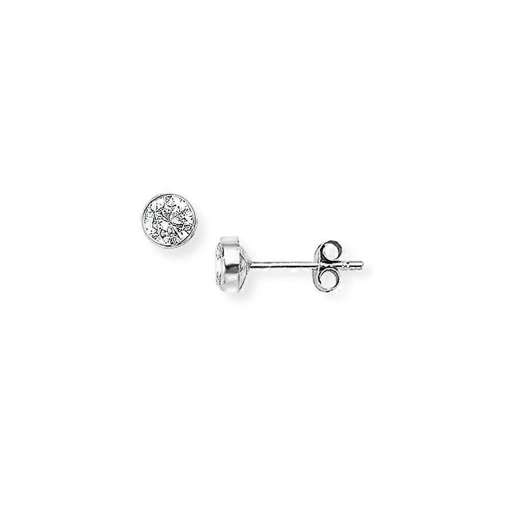 Jewelco London 9ct White Gold Cubic Zirconia Round Bezel Stud Earrings - 4mm