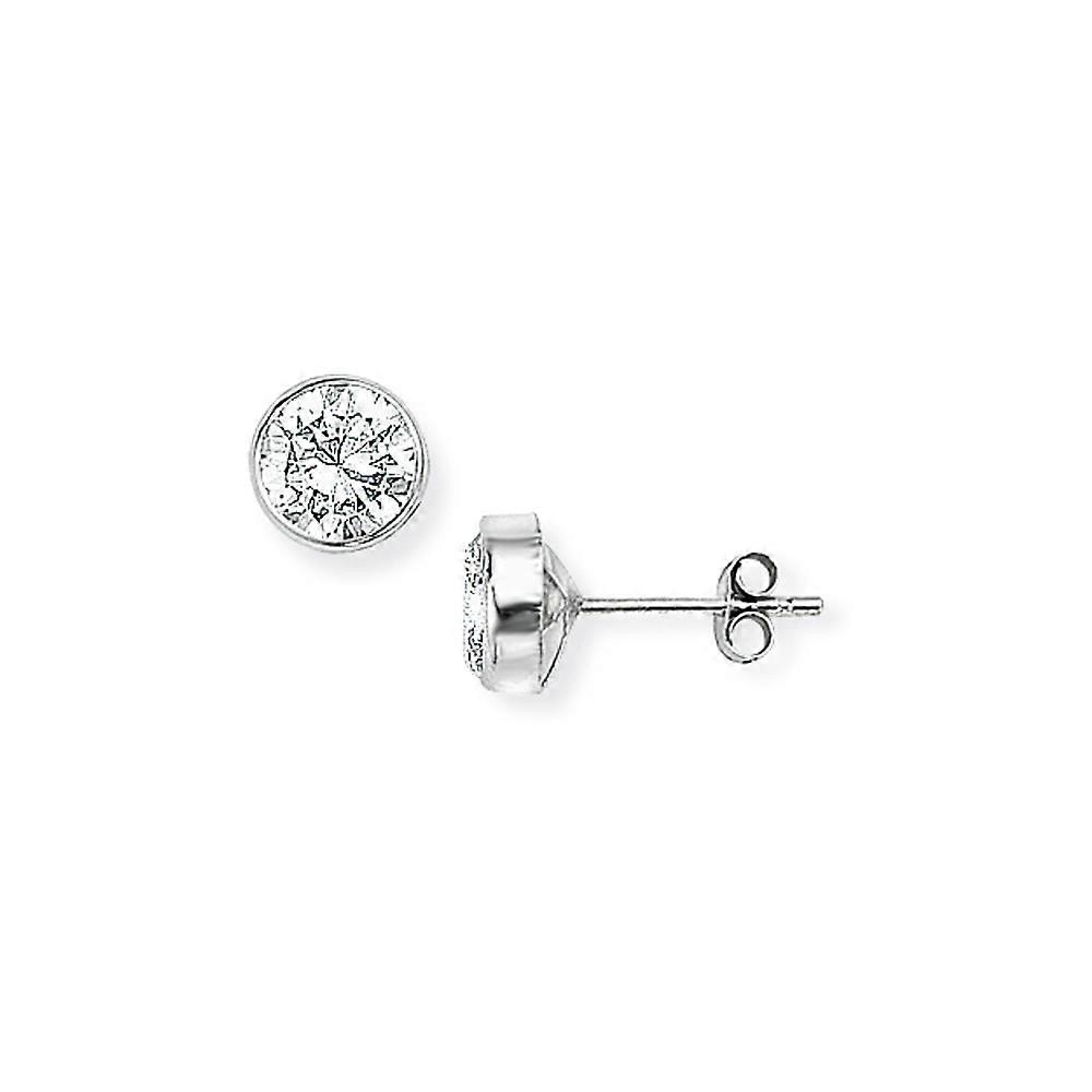 Jewelco London 9ct White Gold Cubic Zirconia Round Bezel Stud Earrings - 6mm