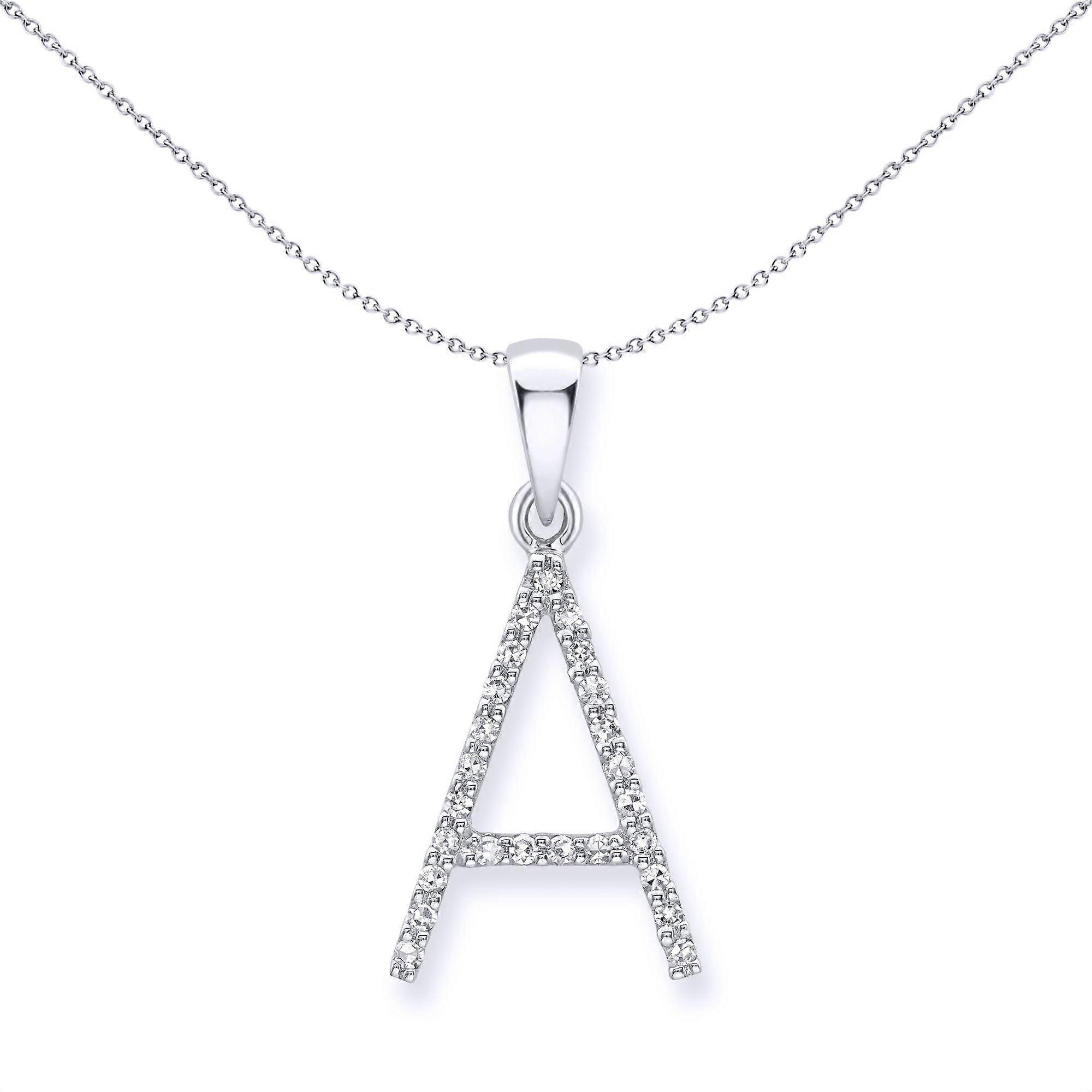 Jewelco London 9ct White Gold Diamond Initial Charm Pendant Letter A 9mm x 16mm