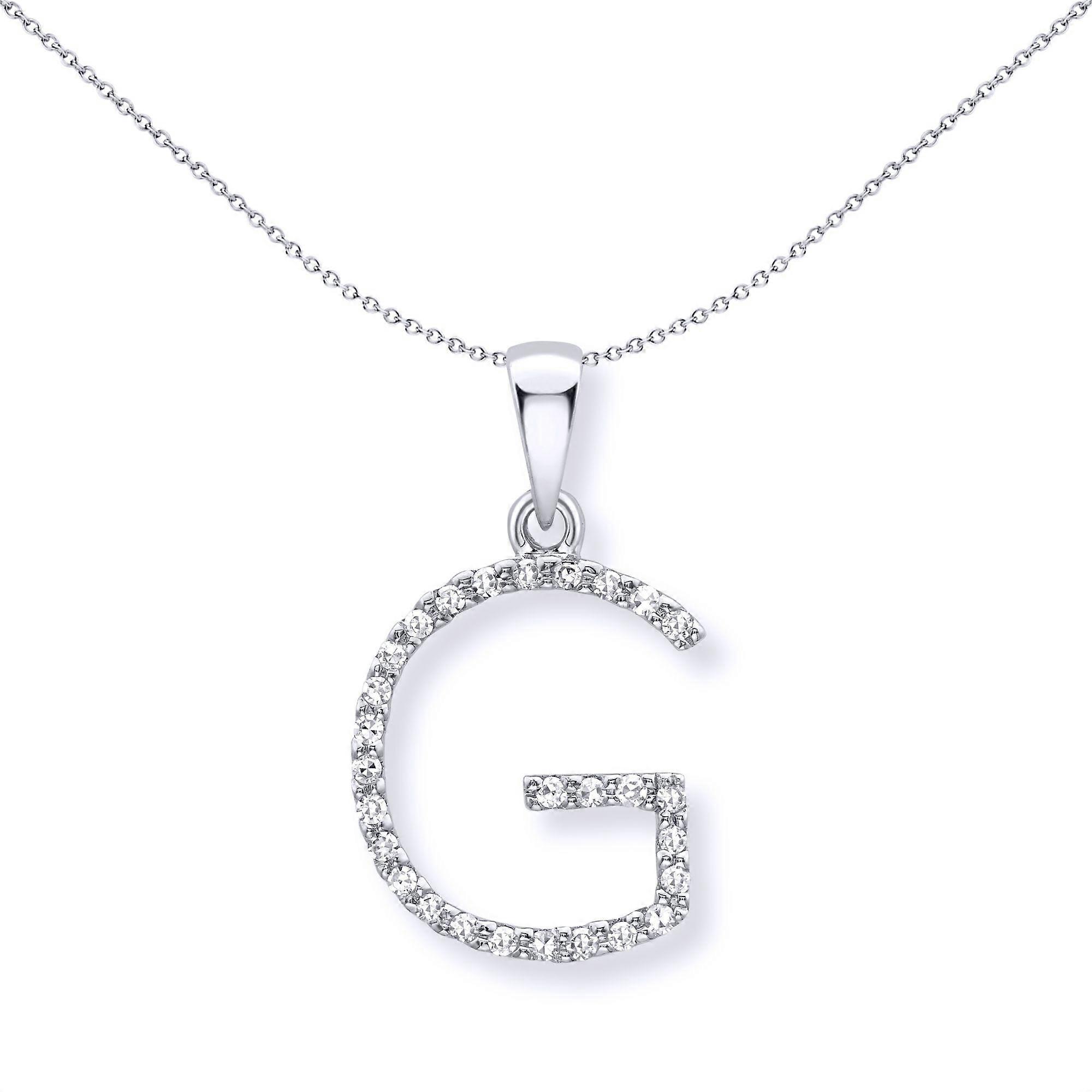 Jewelco London 9ct White Gold Diamond Initial Charm Pendant Letter G 10mm x 18mm