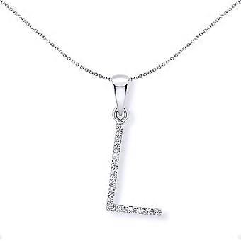 Jewelco London 9ct White Gold Diamond Initial Charm Pendant Letter L 7mm x 18mm
