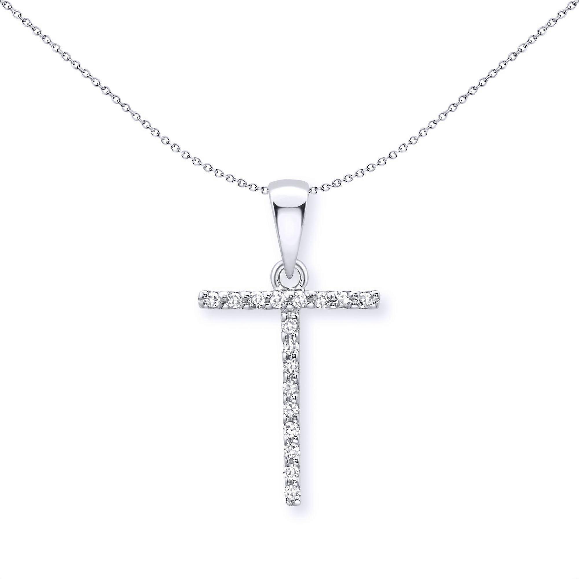 Jewelco London 9ct White Gold Diamond Initial Charm Pendant Letter T 8mm x 16mm