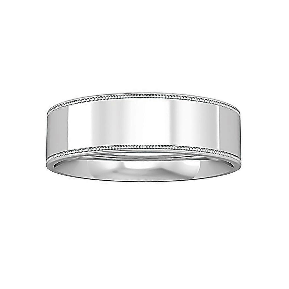 Jewelco London 9ct White Gold Flat-Court Beaded Bevelled Edge Band Wedding Ring 6mm