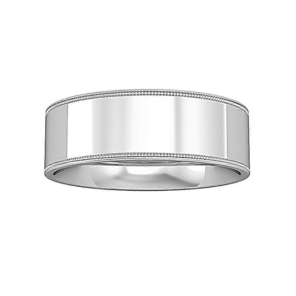 Jewelco London 9ct White Gold Flat-Court Beaded Edge Band Wedding Ring 7mm
