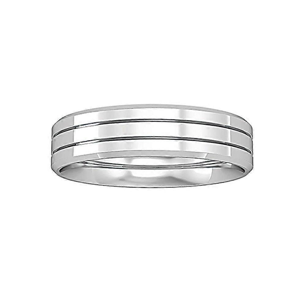 Jewelco London 9ct White Gold Flat-Court Double Groove Bevelled Band Wedding Ring 5mm