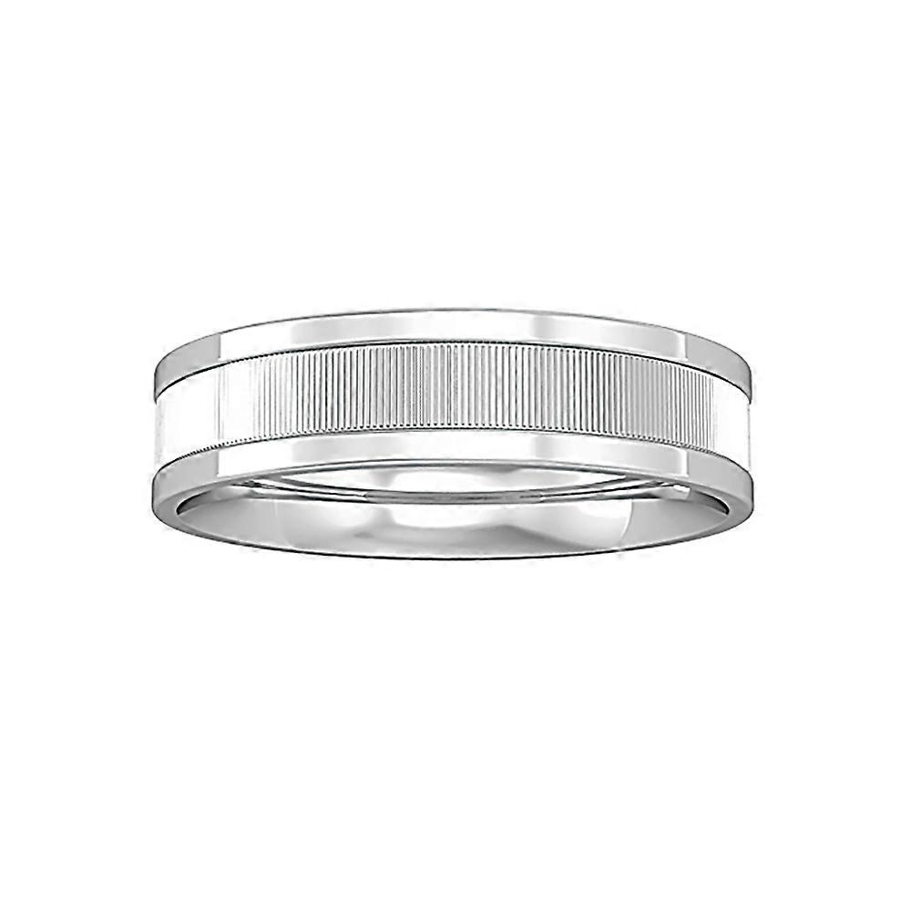 Jewelco London 9ct White Gold Flat-Court Horizontal Rib Cut Band Wedding Ring 5mm