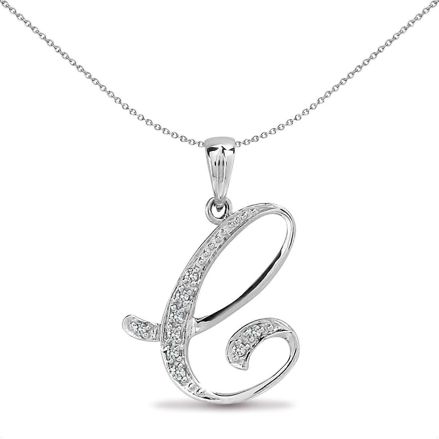 Jewelco London 9ct White Gold Pave Set Round G SI 0.05ct Diamond Identity Script Initial ID Charm Pendant Letter C